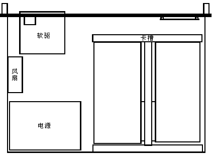 DSC110由若干水平插在卡槽兩側的板卡構成,卡槽固定在機箱的底部的后側。冷卻扇、硬盤、電源、軟盤驅動器和前端面板顯示卡都固定在機箱上。