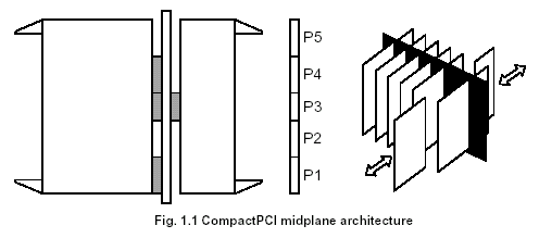 CompactPCI是中間背板結(jié)構(gòu),即有多個(gè)卡插在機(jī)箱前部和后部的結(jié)構(gòu)。該體系結(jié)構(gòu)的背板位于前向插卡和后向插卡之間,提供機(jī)箱中所有插槽間的總線連接和同一機(jī)箱中前向和后向插卡之間的連接。所有的插卡通過(guò)指定的從P1到P5插槽連接到背板。這些插槽的功能在CompactPCI