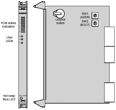 Septel cP板卡的前板上有狀態(tài)指示器。當(dāng)板卡重置以后,所有的PCM狀態(tài)指示器保持開(kāi)的狀態(tài),直到板卡上的軟件開(kāi)始運(yùn)行。