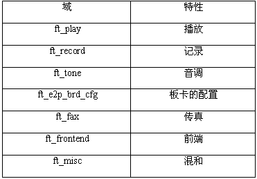 想要?jiǎng)討B(tài)的判定所有的語(yǔ)音資源的播放和錄制功能,可以使用dx_getfeaturelist()語(yǔ)音API函數(shù)。在語(yǔ)音API的頭文件dxxxlib.h中定義了用FEATURE_TABLE數(shù)據(jù)結(jié)構(gòu)中的某個(gè)字段代表的特性。ft_play字段包含的一個(gè)位掩碼指定了一個(gè)特定的語(yǔ)音設(shè)備支持的播放特性。ft_record字段包含的一個(gè)位掩碼指定了一個(gè)特定的語(yǔ)音設(shè)備支持的錄音特性。