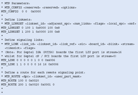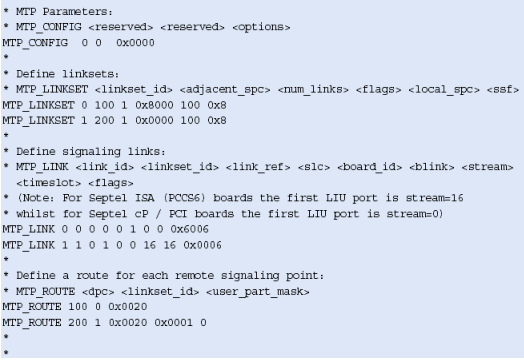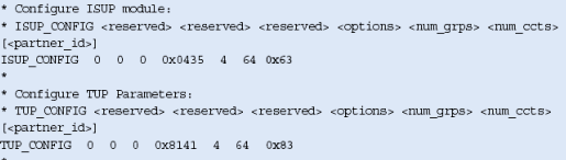 注意,這些不包括任何設(shè)置或定義信令板卡的命令,應該象定義標準的單系統(tǒng)一樣定義。MTP_ROUTE <up_enable>參數(shù)為ISUP設(shè)置,在上例中用戶部分SI=5。