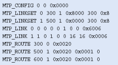 每一目標路由都(包括相鄰的節(jié)點)應該指明兩個鏈路集。.<primary_Is>是連接本地MTP到相鄰節(jié)點的鏈路集的標識符。<secondary_Is>參數(shù)應該用來表示連接共享一個本地節(jié)點編碼的兩個MTP3層的鏈路集。<options>參數(shù)應該設(shè)為0x0001,表明第二個鏈路集已經(jīng)被指定,并且在到達目標節(jié)點的原始路由不可用的情況下,只能使用這個鏈路集。