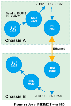 運行在信令卡上的協(xié)議模塊,接收端(對方)的REDIRECT語句應該通過ssd或ssd的驅(qū)動(通常情況下使用module_id為0x20)來對消息進行重定向,如圖14所示。