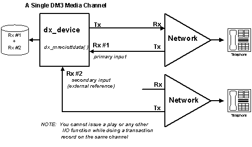 Record, 在一塊Dialogic NetStructure板卡上, 最大可以有120通道的dx_mreciottdata(). 注意 1: